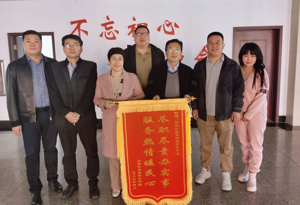2023年4月7日,內(nèi)蒙古建筑職業(yè)技術(shù)學(xué)校副校長(zhǎng)謝飛一行前往新城區(qū)教育招生考試中心贈(zèng)予錦旗“盡職盡責(zé)辦實(shí)事,服務(wù)熱情暖民心”錦旗,感謝多年來(lái)對(duì)內(nèi)蒙古建筑職業(yè)技術(shù)學(xué)校高考報(bào)名系列工作的指導(dǎo)和幫助。