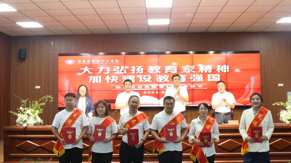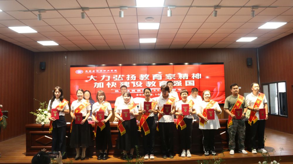 學院領(lǐng)導為獲得“優(yōu)秀教師”“優(yōu)秀輔導員”“優(yōu)秀教育工作者”頒發(fā)榮譽證書。